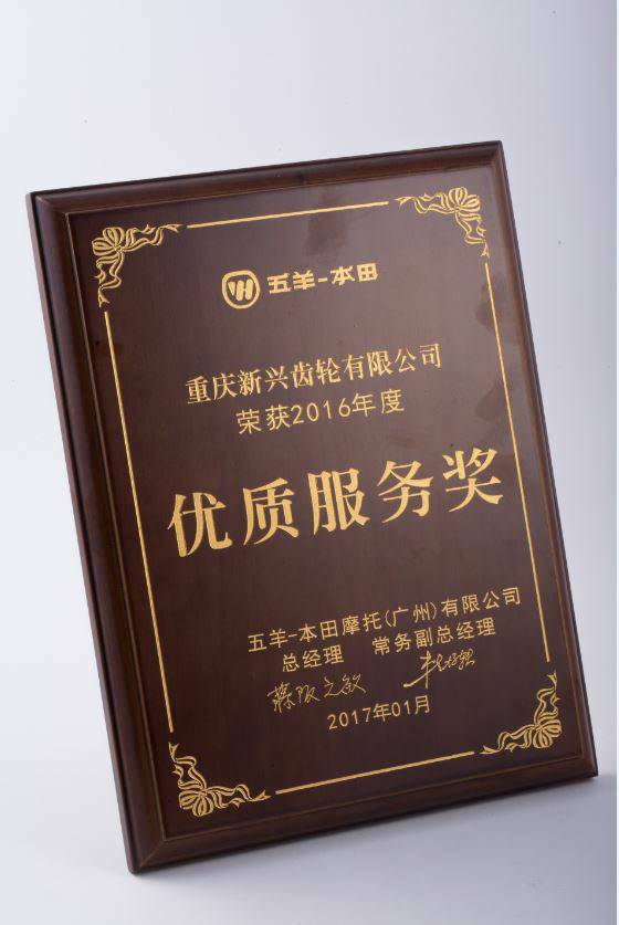 2016年度五羊-本田优质服务奖